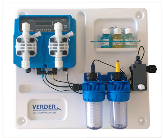 The ME DUAL Panel PH-RX is an all-in-one solution of instrument plus solenoid metering pumps, to check and adjust pH and Redox parameters in the water. High chemical compatibility is guaranteed by PVDF pump head and valves.