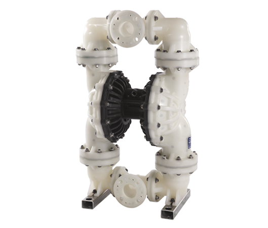 Tehničke karakteristike Max. protok 1059 l/min Max. (izlazni) pritisak 7 bar Air conn. 3/4" BSP/NPT Liquid conn. Combi flange DIN PN10/16 Maximum suction lift (dry) 4.9 mVS Sertifikati CE Liquid conn. DN80 - 3" Ansi 150 Maximum suction lift (wet) 8.5 mVS Max. veličina čvrste materije 13 mm Viskozitet 25000 mPa.s Max. temperatura 66 °C Materials liquids parts Polypropylene, Kynar Materials valves seats Acetal, Aluminium, Buna N, Geolast, Polypropylene, Kynar(PVDF), Hytrel, Santoprene, Stainless Steel, Viton Materials valve balls Acetal,Buna N, Geolast, Hytrel, Santoprene, Viton, PTFE, Neoprene, Weighted Neoprene Materials diaphragms PTFE (2 piece), Hytrel, Buna-N, Santoprene, Viton, Geolast, Neoprene (overmolded) Material center section Polypropylene, Aluminum -
