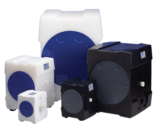 The Verderair PURE VA-P25 is a compact, high efficient air operated double diaphragm (AODD) pump, produced from one-piece solid pure PE or PTFE. Suitable for medium transfer/container emptying or as a basic dosing pump.